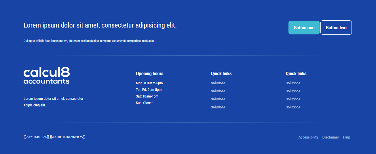 Update the link to the footer style you wish to use by commenting in the footer .less file you wish to use in the styles.less file and then commenting out any unused footers or removing. Finally, copy over the relevant code from the html includes footer file in to the main master, moving the flexinav / mini sitemap and any other widgets in to place.